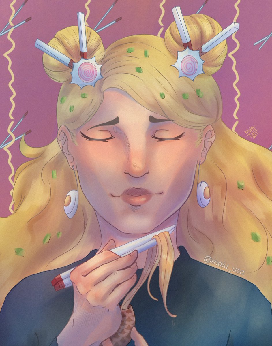 Fiz esse desenho que na vdd eu refiz o de uma amiga do curso '3' enfim uma garota digna de uma propaganda do @CupNoodles_BR ksksksk #digitalart #myartwork #artvsartist2021 #artist #artistsontwitter #artista