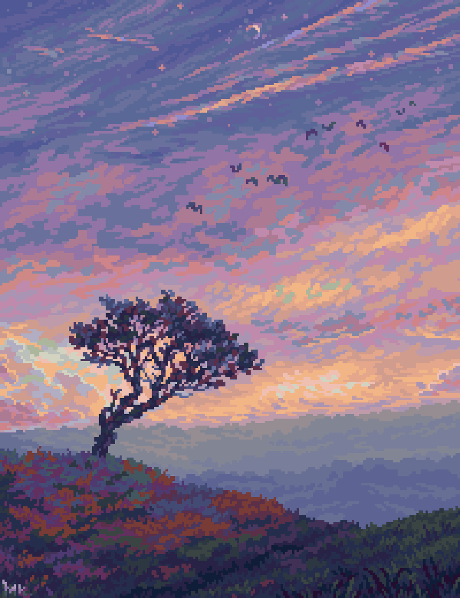 Hi, #PortfolioDay I'm Mak, landscape, environmental pixelartist. Currently intruiged and experimenting in textures, mostly thick paint feels. 🖌️🐦