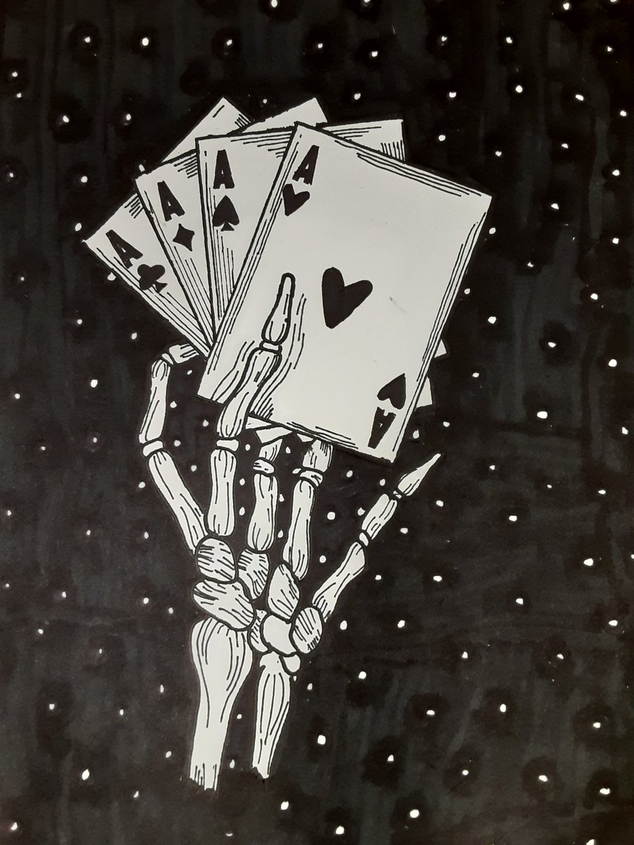 Inktober2021 Day 10: Pick #inktober2021 #inktober2021pick #myart #pick #skeleton #cards #pickacardanycard