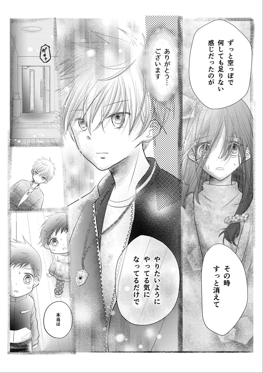 【創作漫画】「ハルいちばんにさくハナの話」【11】 休みの日、双子と一緒にギョウザを作る悠一と桜。微妙に目線を合わせてくれない悠一に桜は… (1/2) #創作漫画 #漫画が読めるハッシュタグ #創作男女