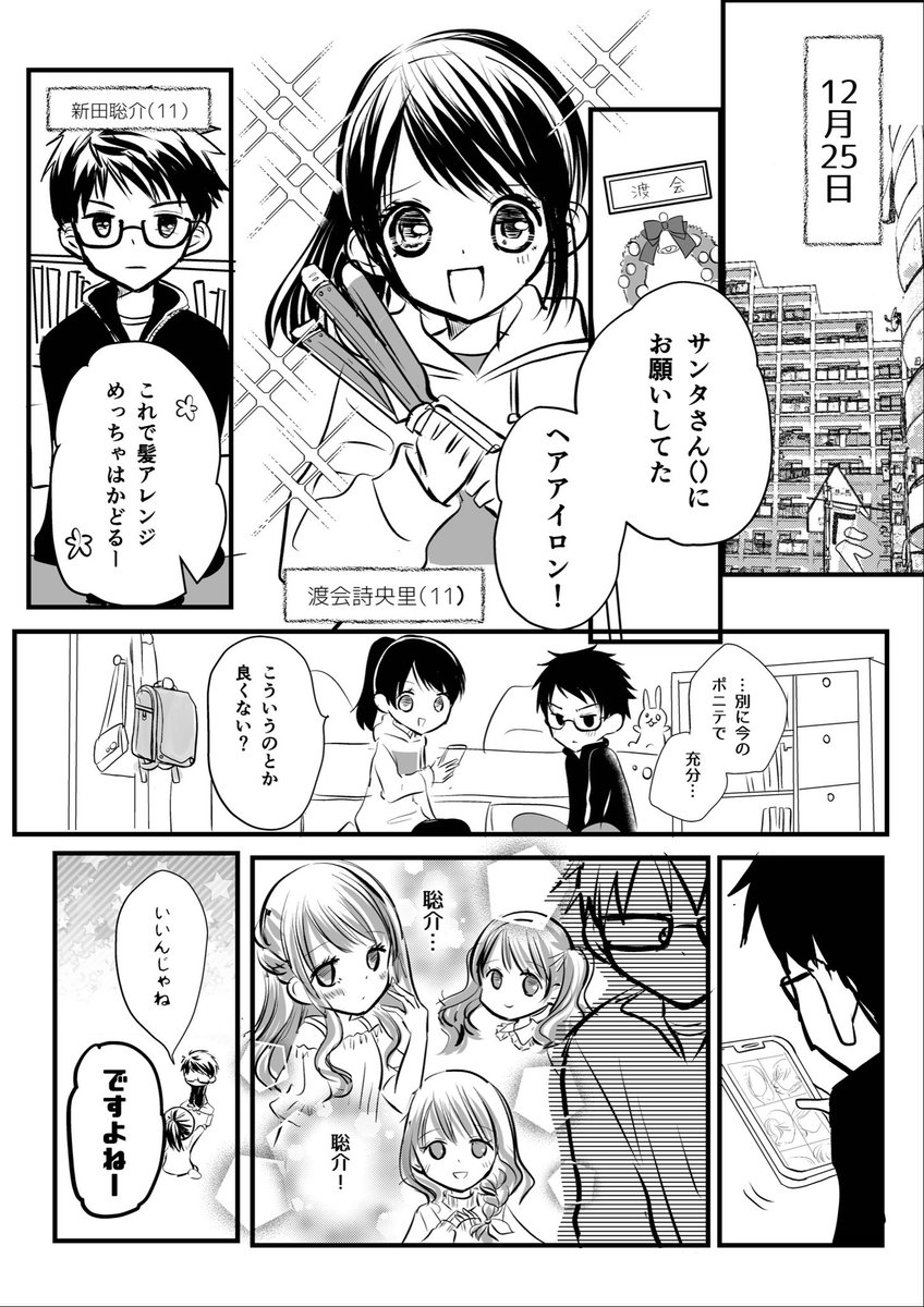 【落書漫画】「今年もケーキを君と2人で」 新田聡介×渡会詩央里(そーしお)の話。 詩央里の家の冷蔵庫に残る?クリスマスケーキ。本当は誰が食べるはずだったのか… (1/2) #漫画が読めるハッシュタグ