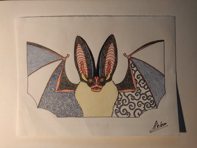 Colored 3rd day for the cold nights of Inktober. The word was "bat" and precisely I drew a Corynorhinus townsendii. #art #illustration #inktober #inktober2022 #inktober2022day3 #bat