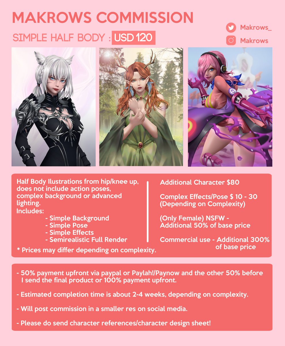 [Retweets would be greately appreciated!] Hi, Im opening two slots for commission! Do look at my commission sheet below! If there is anything, please do DM me! Feel free to send emails to makrowsart@gmail.com as well! #commissionsopen #CommissionSheet #ArtistOnTwitter #FFXIV