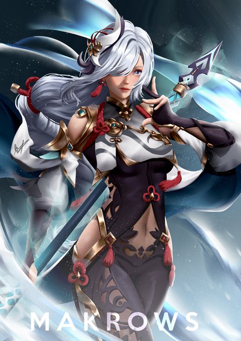 Finished render of Shenhe following official and raiko's art! Love how this end and can say best piece for my 2021! #原神 #genshinimpact #shenhe #fanart #genshinimpactfanart