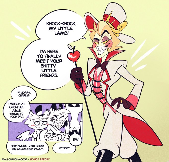 If @VivziePop won't give us the deets, I will fill in the blank 😩👏 Retweets appreciated! #HazbinHotel #HazbinHotelhusk #HazbinHotelFanart