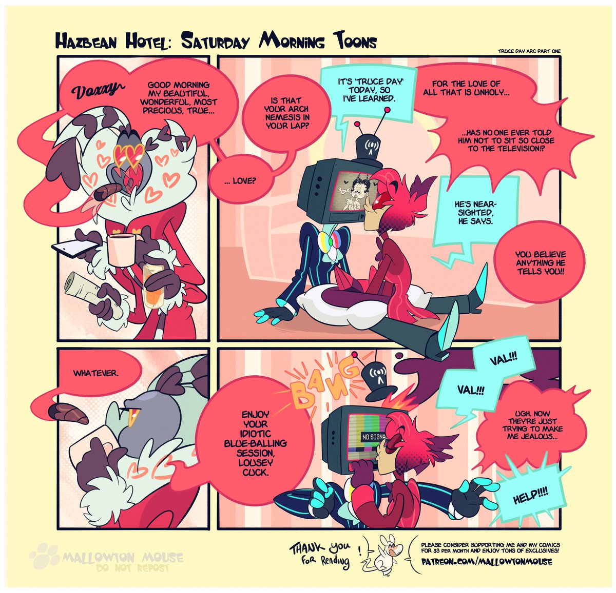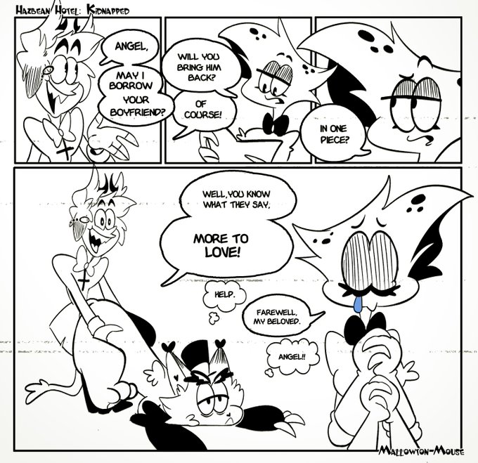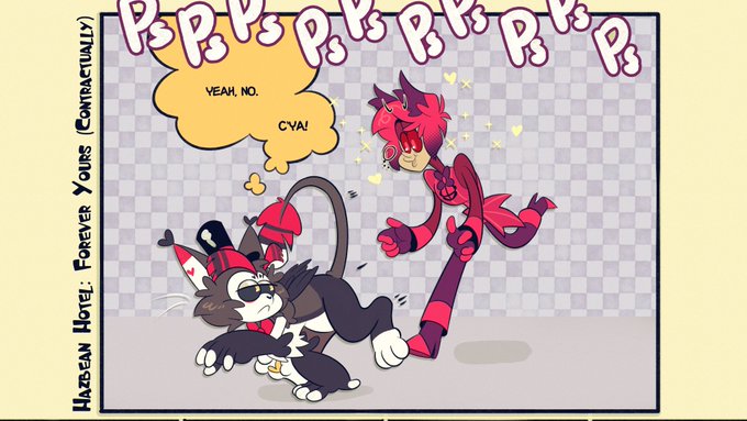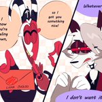 The new Hazbean Hotel has been posted to Patr^on! I think I will make this one the month's public strip because it's for the Radiousk kiss event 🤔 Or maybe I will run a poll if you guys prefer to see Angel Dust as intended ^-^; #HazbinHotelHusk #HazbinHotel #HazbinHotelFanart
