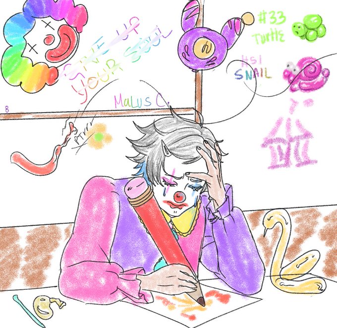 Day4: (suffering through)Clown school made ablank if you feel like coloring it lol (deffenetly show me if you do)⬇ #Augoost2023 #Bettelful