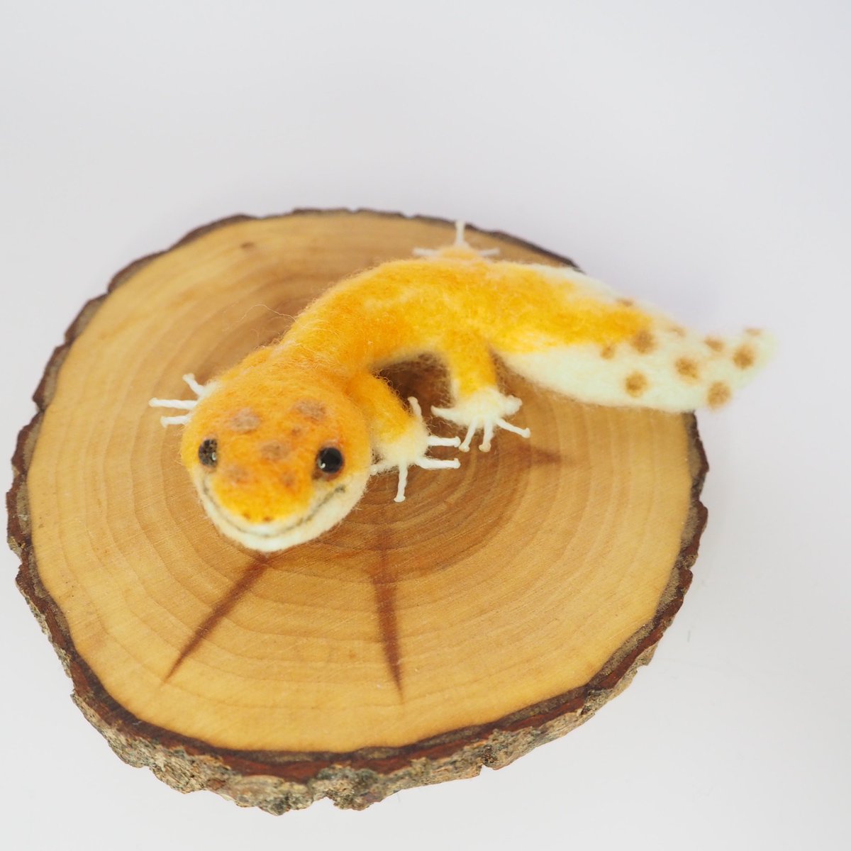 ファイアウォーターレオパちゃん。 オレンジ強め🍊 おめめもオレンジ系にしてみました! #レオパードゲッコー #羊毛フェルト