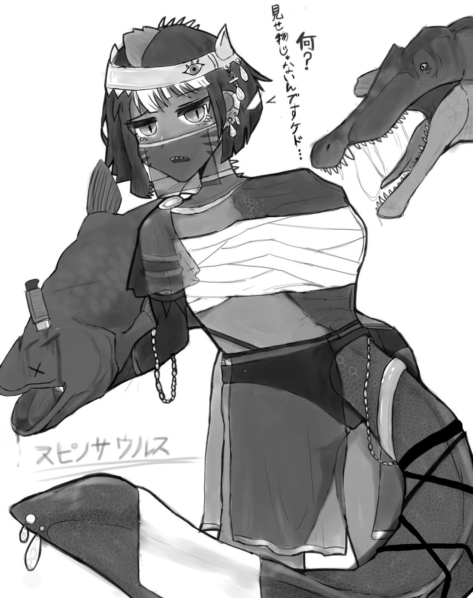 33日目 スピノサウルス ここに来て王道の恐竜です( ・∇・) 友達の好きな古生物らしいので描きました スピノサウルスはエジプトら辺の西アフリカで発見されたらしいのでエジプト感を意識しました! #古生物 #擬人化 #スピノサウルス #恐竜 #イラスト #デジタル #絵