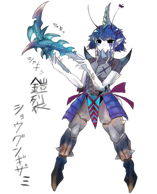 6 35 やっとできたー…足の方雑になってるかも…トホホ… #鎧裂ショウグンギザミ #擬人化 #モン擬 #イラスト #絵 #モンハン 22/03/18 02:50