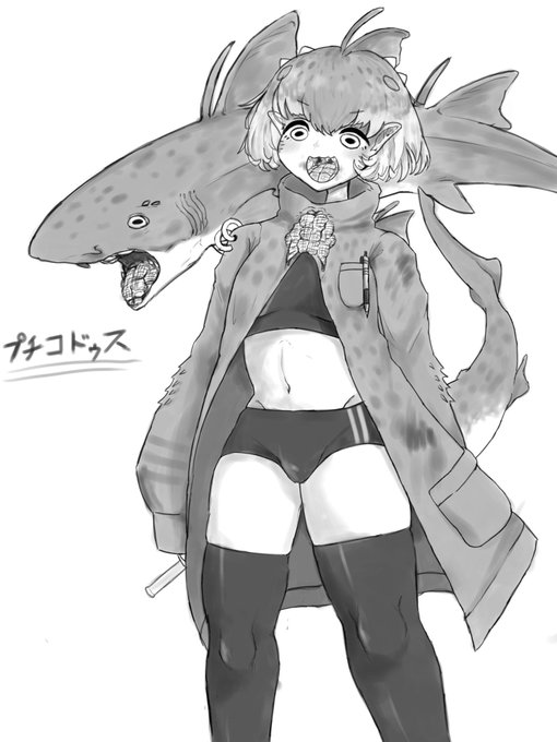 2 19 35日目 プチコドゥス 答え合わせ この歯でアンモナイトとかを食べていると考えられててネコザメくらいの大きさなんかなーって思ってたら10メートルあって当時最大のサメだったって言うのはびっくりした #古生物 #擬人化 #イラスト #絵 #サメ #プチコドゥス 22/08/02 02:14