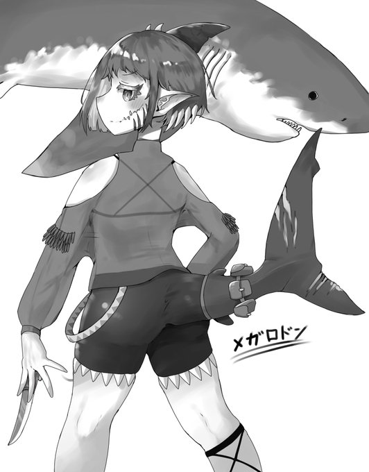 4 8 37日目 メガロドン 意外としてなかった擬人化 でかい以外の特徴といった特徴が見つけられんかったから擬人化するの難しかった #イラスト #絵 #古生物 #擬人化 #メガロドン 22/10/26 02:12
