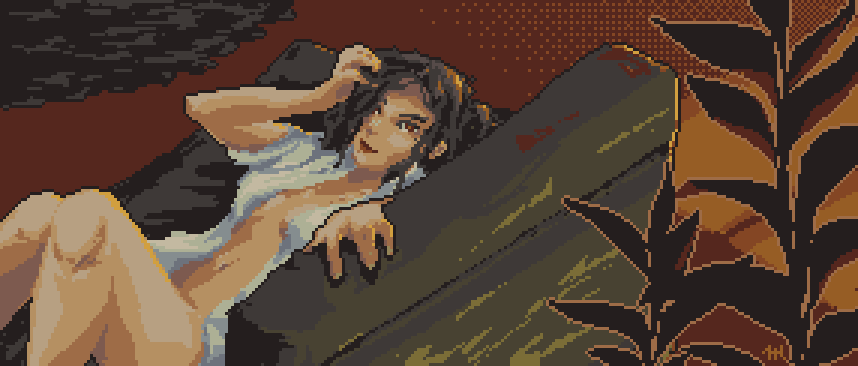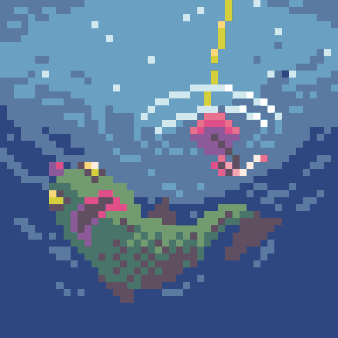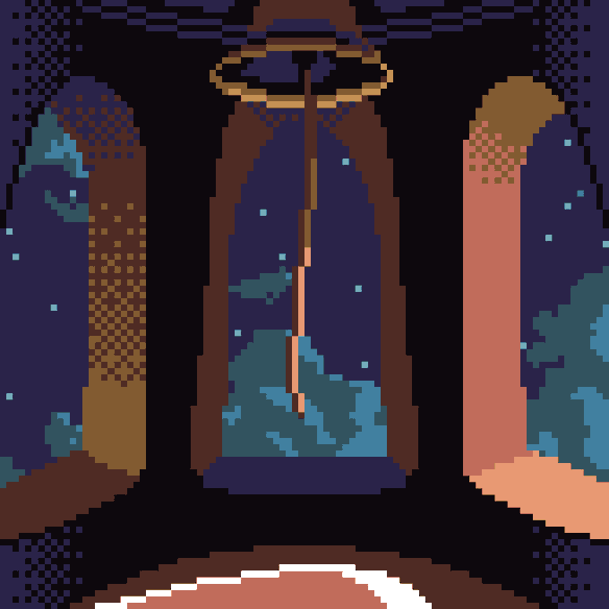 Two months ago I was just having fun with the #dreamscape8 palette and tried (weird) things, but I never finished... Maybe I'll go back on some of them later. #UnfinishedWork #ドット絵 #pixelart #aseprite