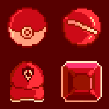 My late contribution to #set of #ThingsThatAreRed, restriction: 24x24px per thing. #pixel_dailies @Pixel_Dailies #pixelart #dotpict Pokeball / Babybel / Ferrari Cap / Rubis