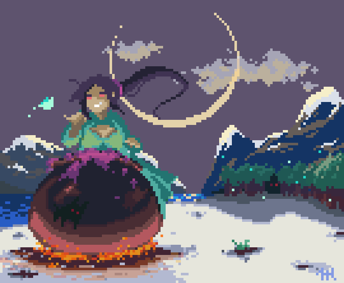 My first contribution for the #PixTogether event! Themes: Fire, Snow & Magic for the 7th edition. @Pix2getherEvent #challenge #event #pixelart #ドット絵 #aseprite