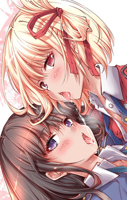 王様じゃんけんに負けてたきな様の舌を甘噛みせよと命令されるされるまんざらでもない千束さんです💙❤️ 千束❤『はむはむ…たきな様どうかな?』 たきな様💙『ダメですっ!もっと強く!』 #リコリコ #リコリス・リコイル