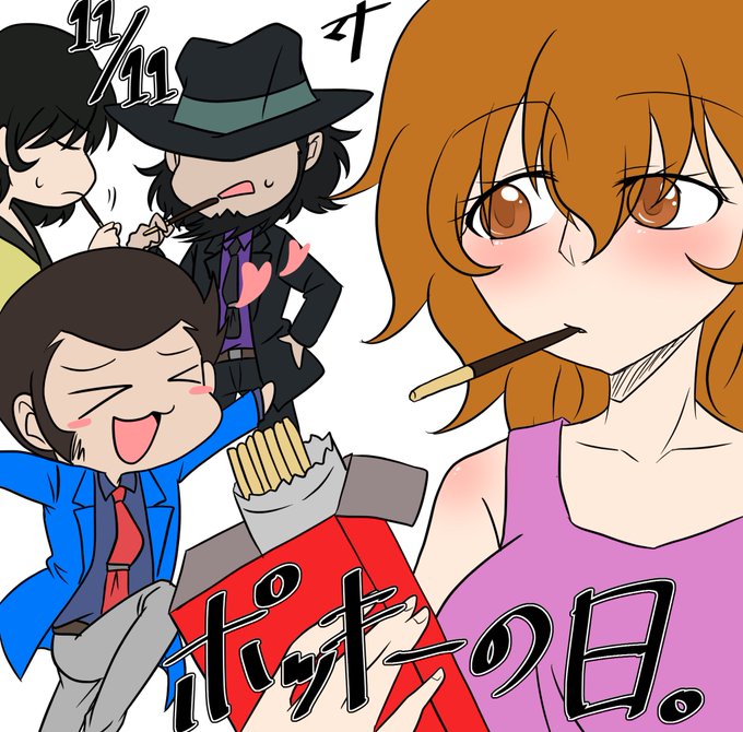 2 26 【ルパン】ポッキーの日落書き!間に合ったーーー!!! おんなのこが描きたい気分だったのでふじこちゃんを久しぶりに〜 18/11/11 22:15