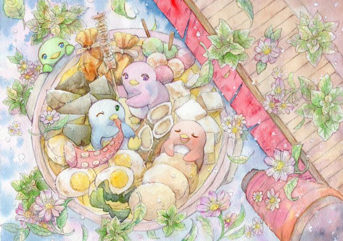 3 36 ☆ 手描きの水彩画☆ いらっしゃいませー! 寒いでしょ? ペンギン出汁の、おでんあるよ~! #オリジナル #アナログ #水彩 #動物 #ペンギン #イラスト 22/11/06 21:31