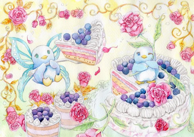 5 36 ☆ 手描きの水彩画☆ 今回のペンギンおやつは ブルーベリーケーキ! 豪華に描けたかなと。 水彩紙ホワイトワトソン #オリジナル #アナログ #水彩 #動物 #ペンギン #イラスト 22/12/18 11:01