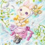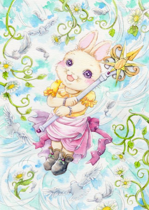 2 14 ☆ 手描きの水彩画☆ うさぎと鳩。 白い鳩は平和。 太陽の杖は光を。 水彩紙ホワイトワトソン 水彩絵具ホルベイン #動物 #うさぎ #水彩 #イラスト #オリジナルイラスト #アナログイラスト 23/01/07 22:07