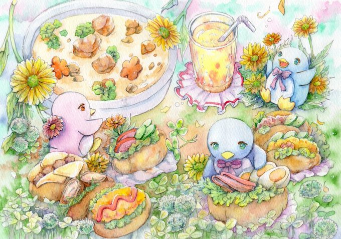 1 8 ☆ 手描きの水彩画☆ 食いしん坊ペンギンと手巻き寿司! お花見で、もぐもぐ。 海苔と玉子で巻いてます。 具はカニとか肉とか色々。 水彩紙ホワイトワトソン #オリジナル #アナログ #水彩 #動物 #ペンギン #イラスト 23/04/02 21:50
