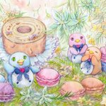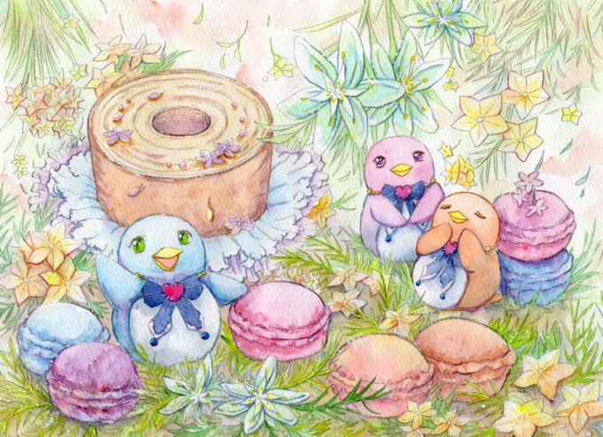 6 45 ☆ 手描きの水彩画☆ 食いしん坊ペンギンと バームクーヘン&マカロン! この食べ合わせで、 口の中の水分が失われていくペンギンたち! 水彩紙ホワイトワトソン #オリジナル #アナログ #水彩 #動物 #ペンギン #イラスト 23/03/19 22:02