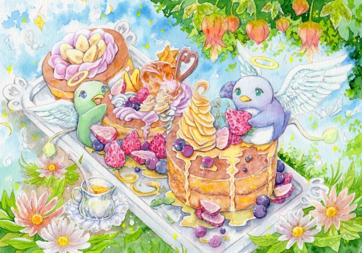 3 5 ☆ 手描きの水彩画☆ ペンギン☆ふわふわホットケーキ! お手軽おやつ。 フルーツとかアイスを乗せてます。 水彩紙ヴィフアール #オリジナル #アナログ絵 #水彩イラスト #ペンギン #イラスト #ホルベイン #水彩発掘隊 23/04/23 11:01