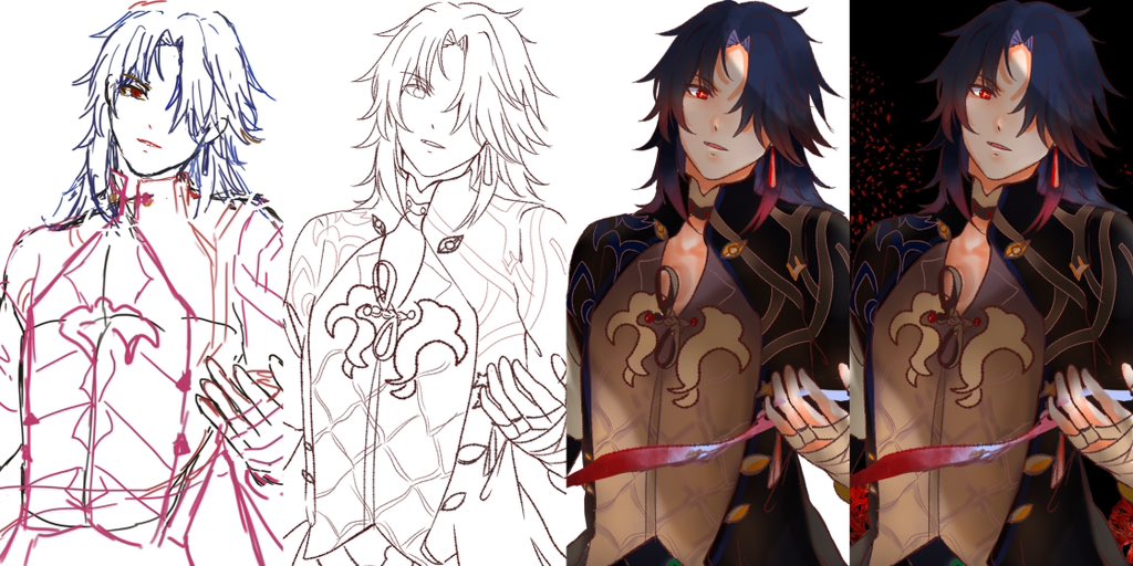 Put the drafts in the first reply as well , my entry for Hutao fanart contest #GenshinImpact #HuTao #FanArtContest