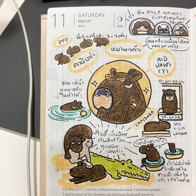 11.03.23 🐾 ช่วงนี้คาปิบาร่ากลายเป็นที่พูดถึงไม่แน่ใจว่าเพราะอะไรเหมือนกัน55 แต่น้องน่ารักมากๆๆ เพิ่งรู้ว่าน้องตัวใหญ่กว่าที่คิด?! นอนหลับในน้ำได้ แถมลูกของคาปิบาร่าเรียกว่า pup แหละ น่ารักกก~~🥺💕✨ #หมามะพร้าว #กะปิปลาร้า #คาปิบาร่า #manasawiihobonichi2023