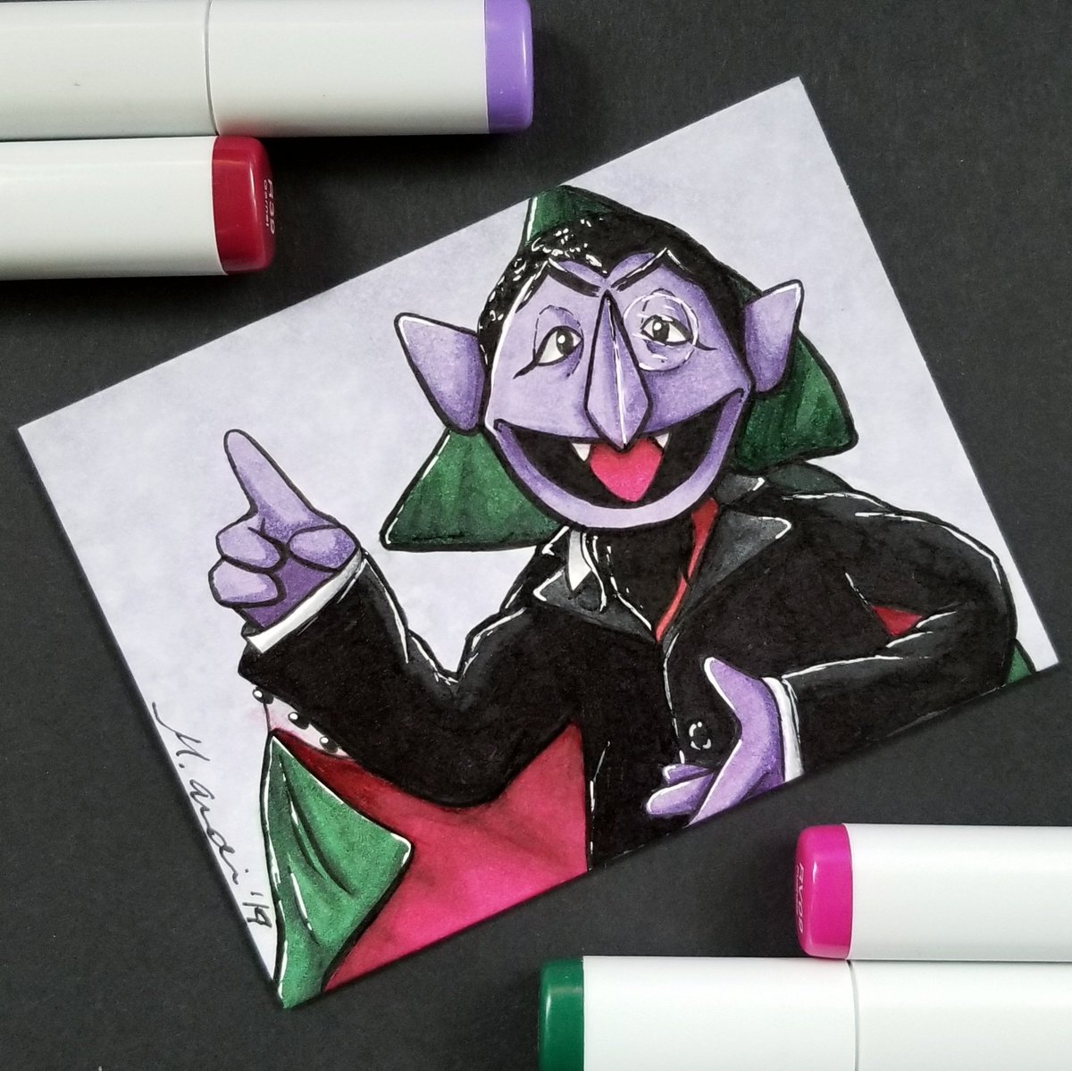 Inktober day 30! Finished Count. One. One day left. Ah ah ah! 🧛♂️#inktober #Inktober2019 #countvoncount #sesamestreet