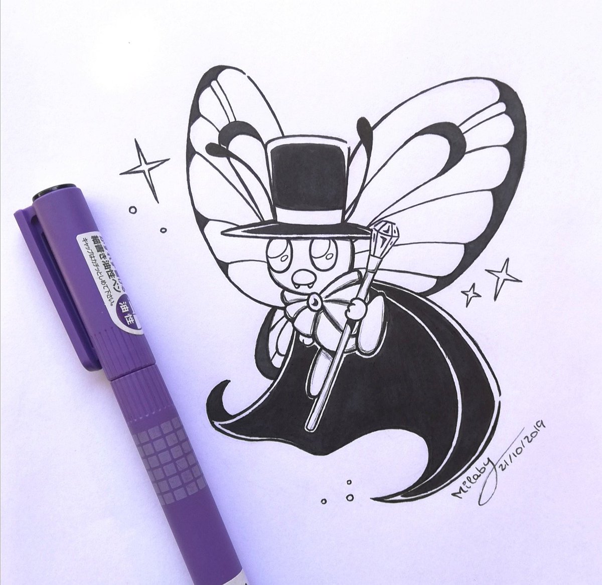 Day 21 - Favourite bug type 🦋 BARON Butterfree . . #inktober2019 #pokemon #butterfree #baron #fanart #halloween #traditionalart #anime #videogame
