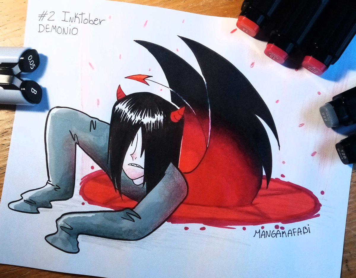 #2 Inktober !! ✨ Tema del día: Demonio Illumix huyendo de su "mamá" en el infierno (? XDD #intober #inktober_exiled #Inktober2019