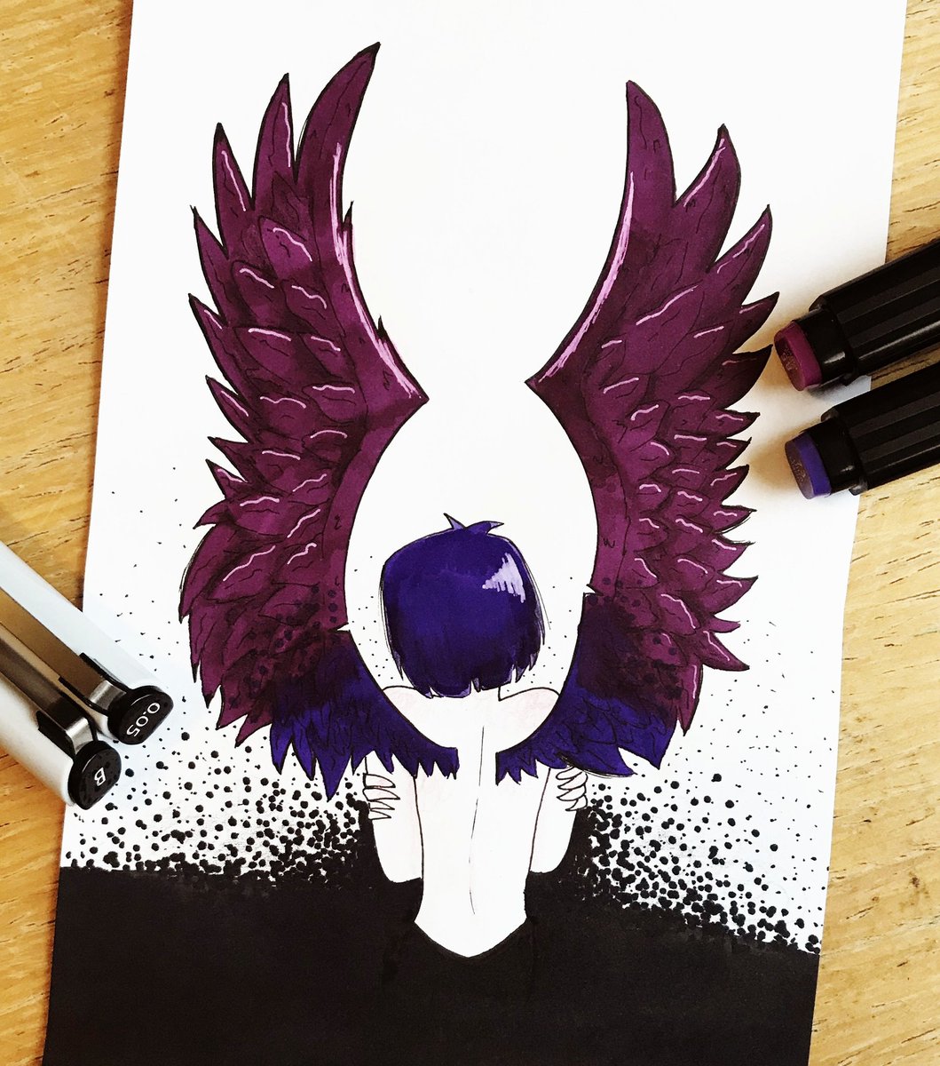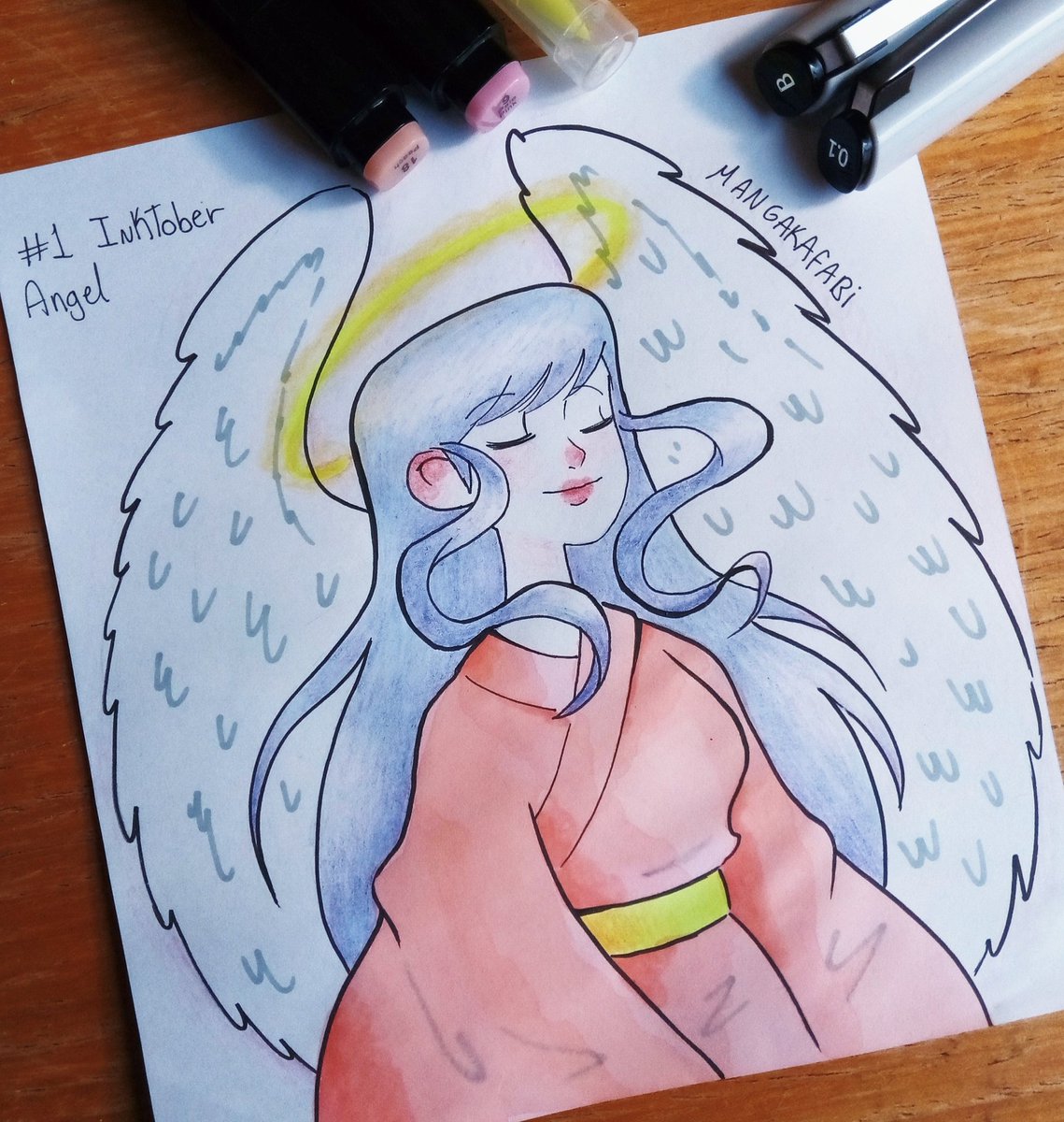 #1 Inktober Temandel dia: Ángel Ariel ♥️ con este inktober espero practicar el coloreado con marcadores, algo que siempre me ha costado mucho ;u; también usaré lápices de colores si me falta algún color en los marcadores ✨ #inktober #inktober_exiled