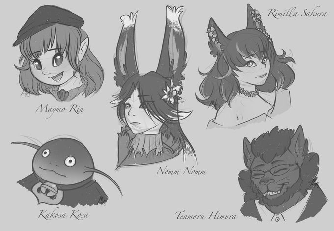 Here are my #lunartparty pieces! This was a lot of fun… and today I’ve made the discovery that I’m apparently pretty good at doing hrothgar. Food for thought. 🤔 #lunarcon2022#ffxivart