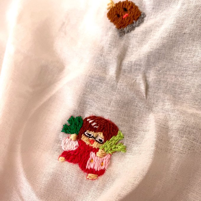 #なつめさんちの美術室 #刺繍 これは株とハネッコをもってるさやさんと写りこんだディグダ╰( 'ω')╮=͟͟͞͞◒