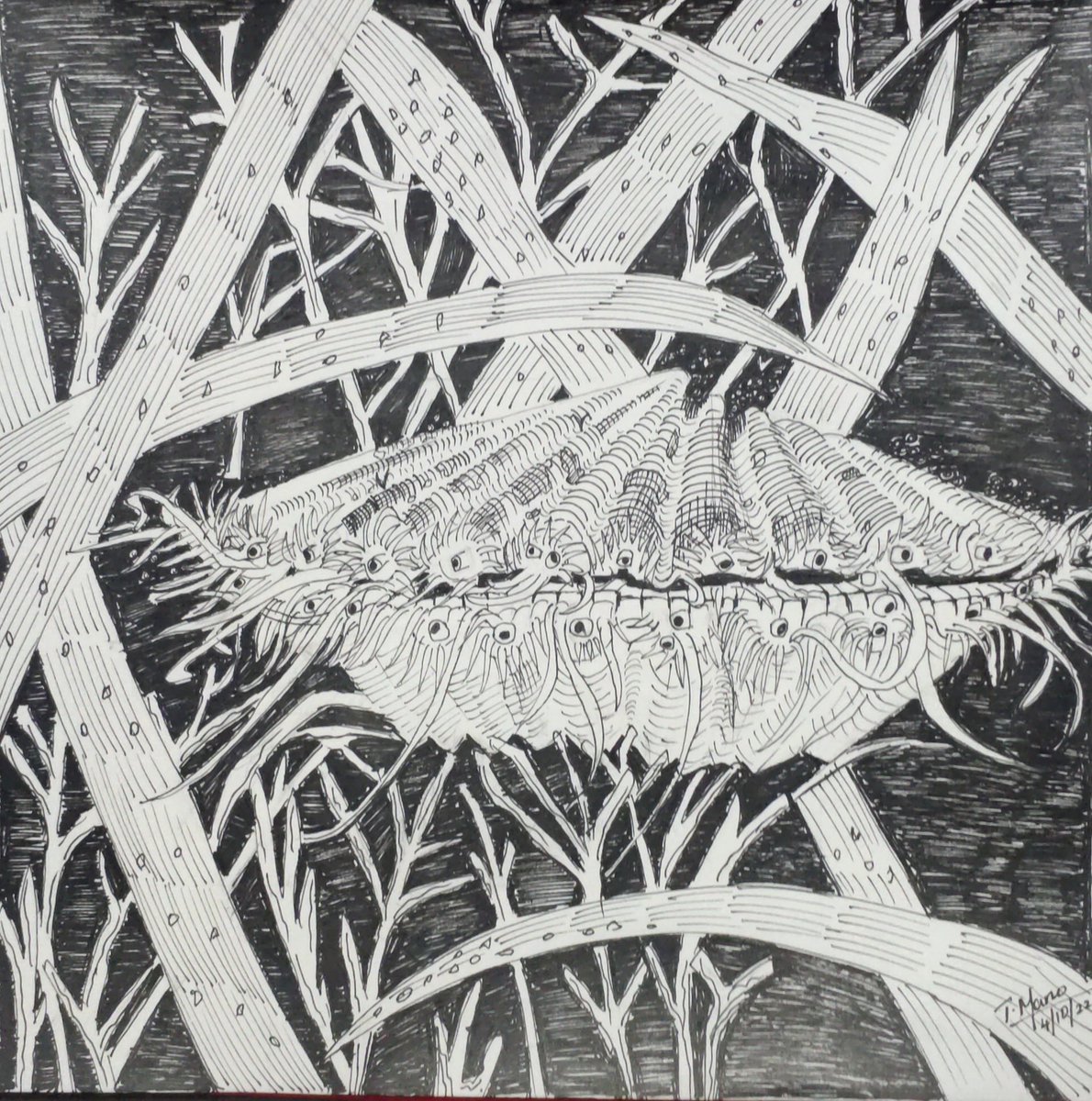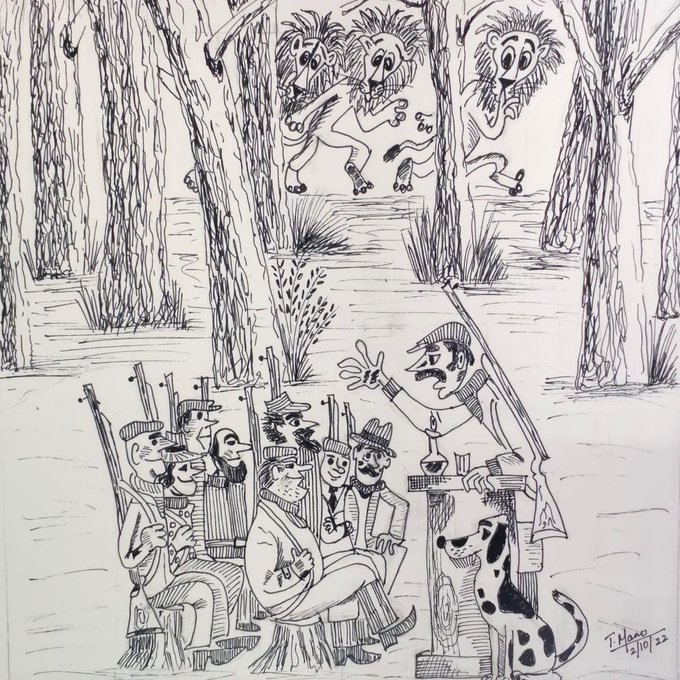 0 1 Hunters are too busy to notice the scurrying lions #inktober2022 #inktoberday2 #beginnerartist #inktoberscurry Ref: Illustration by Mikhail Belomlinsky 22/10/02 22:42