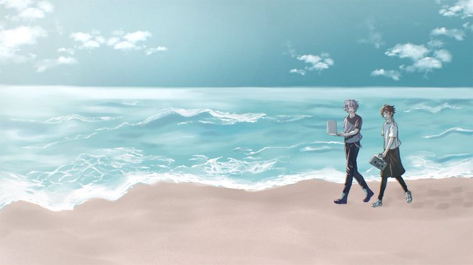 6:30 飯屋海岸 朝から海素敵でした! 青春だ! #にじさんじラジオ体操部 #絵スコート #さ絵ぐさ