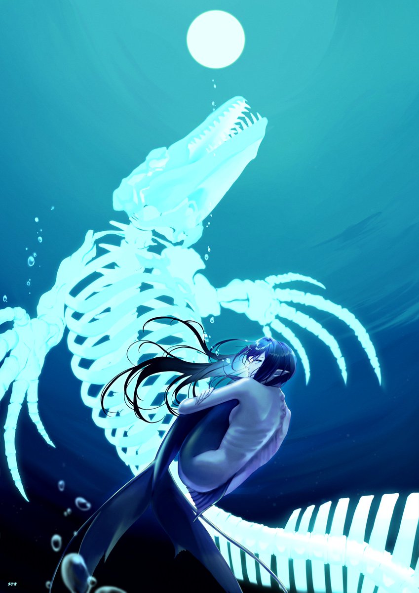 青い絵描きたかったから大変満足🔷 人魚と骨 #illustration #オリジナルイラスト