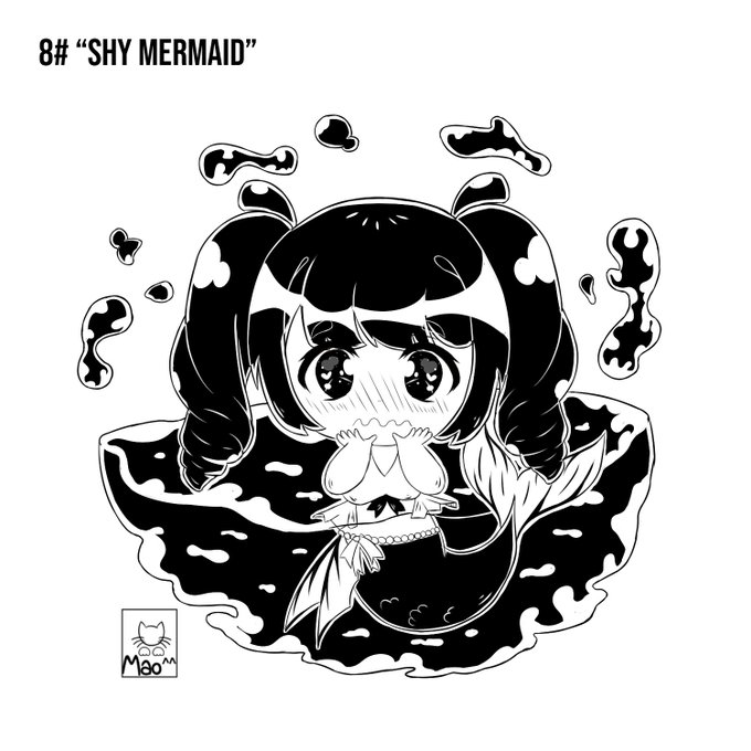 8# "Shy Mermaid" here we go with day 8 of #inkgris This drawing is small because the little mermaid told me that she did not want to be seen because she is very shy #inktober2020 #inktober #ink #water #chibiart #chibi #kawaii #shy #kawaiianime #anime #aesthetic #digitalartwork