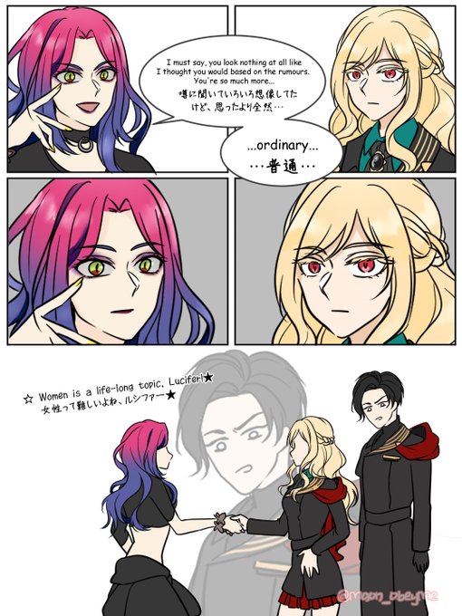 【Our way of communication: 👁️👁️】 I just imagine how these two lone wolf first met and they immediately identify each other as comrades and Lucifer be all confused af...😂😂😂 #obeyme #obeymefanart #obeymemc #obeymethirteen
