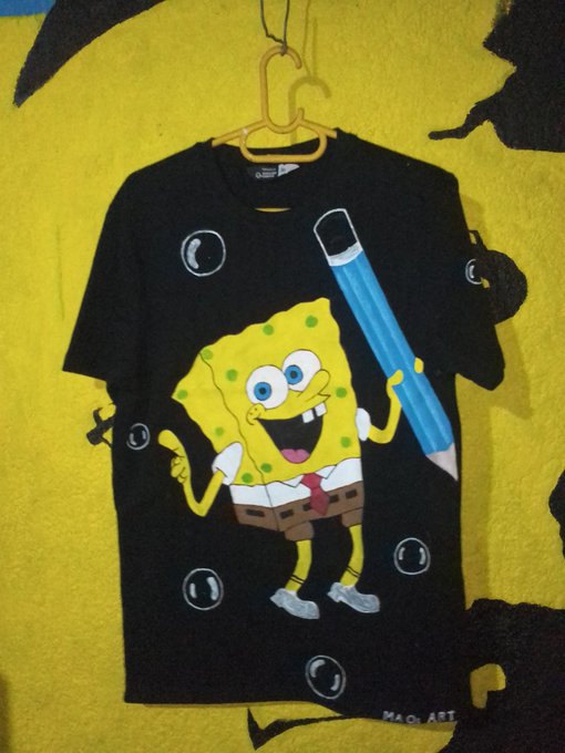 Oh guys I hand painted this beautiful SpongeBob t-shirt, it's exclusive. Price R300 size Small. Excl- courier. Please RT🙏 your support will be high appreciated. #DrawMillie #Drake #artmoots #NFTGiveaway #nft #SpongeBob #yellow