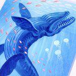 やったー✨✨間に合ったーー! 銀箔とメイク用のラメパウダーを膠で貼ってキラキラにしてみた。😎💡 #海 #風景画 #水彩画 #日本画 #アナログアート #絵画 #みんなで楽しむTwitter展覧会 #初夏の創作クラスタフォロー祭り #今月描いた絵を晒そう #作家さん相互フォロー歓迎