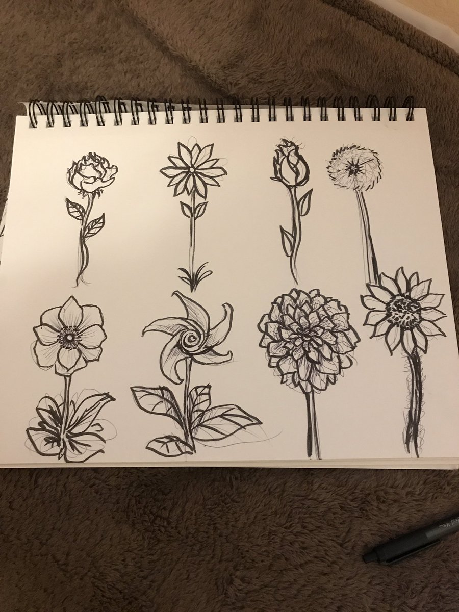 Inktober!!🌸🌺🌷🌹🌼🌻✨ all caught up! Each flower represents a day I missed plus I accidentally did an extra one haha #inktober2019 #inktober #flowers #fun #inktoberday17 #catchingup #behind #nature #inkandpen #ink #inkdrawing