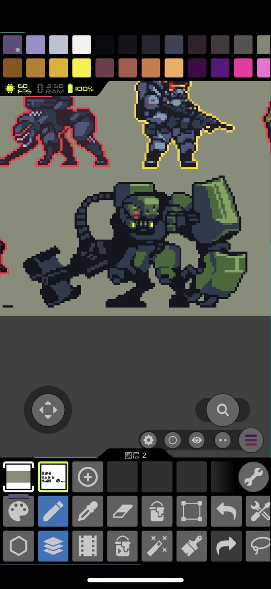 2 24 看来正好能塞九个精灵,不过我考虑画点大号的东西 #pixelart #ドット絵 22/03/05 23:16