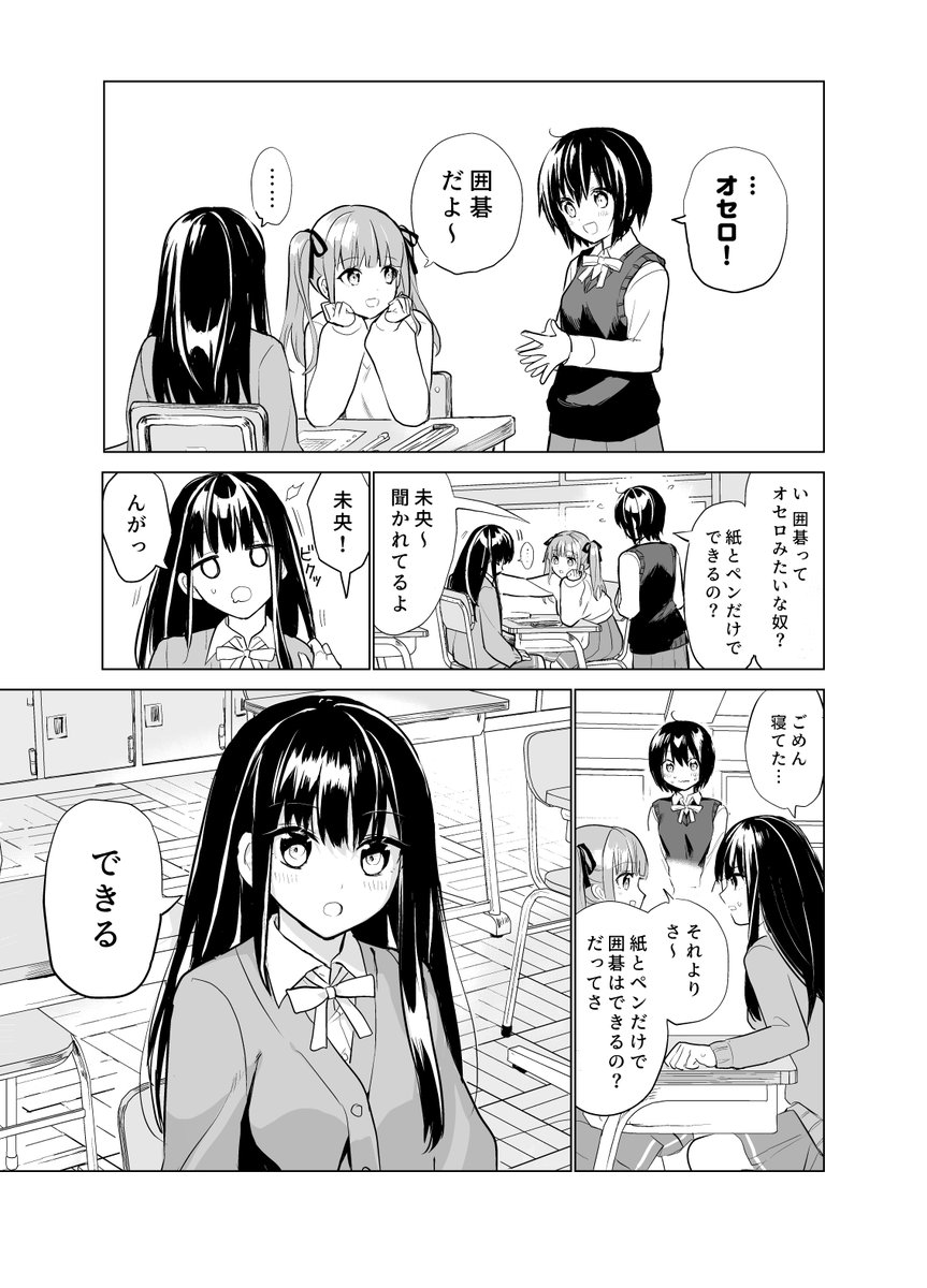 数年前にコミティアで出していた囲碁部漫画をリメイク中です 今度こそ完結させます #漫画が読めるハッシュタグ 第1話▷ pixiv.net/artworks/10877… 第2話▷ pixiv.net/artworks/10947… 第3話▷ pixiv.net/artworks/11031…