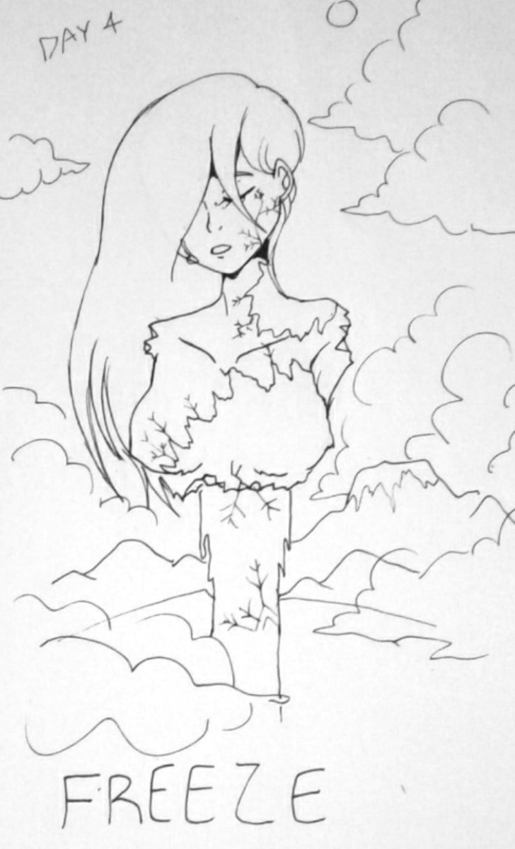 Day 4 - Freeze "The pieces, the woman and the ice" - MaryChanFX #Inktober #Inktober2019 #TraditionalDrawings #MaryChanFX