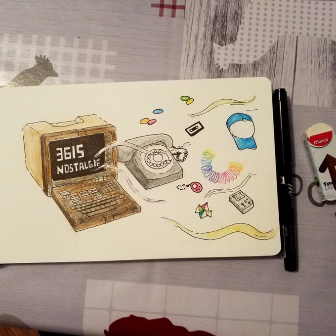 Wtfctober 5 - Minitel. Ahh Minitel, the french internet of the past 😁 #wtfctober #inktober #minitel #retro #moleskine #inkdrawing #watercolor