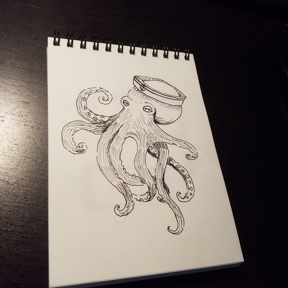 Wtfctober 9 - Octopus. I'm late, I'm late like the bunny from Alice in the Wonderland 😄 #wtfctober #inktober #inktober 2020 #octopus #inkdrawing #sketchbook