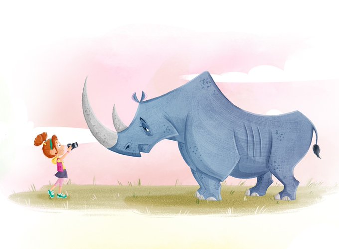 This time a large rhino was sighted !! #kids #kidlitart #childrensbook #animal #character #characterart #Illustrator