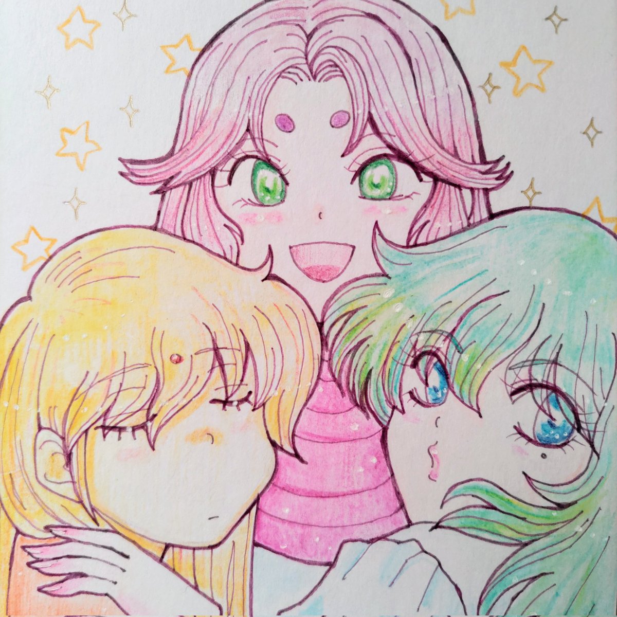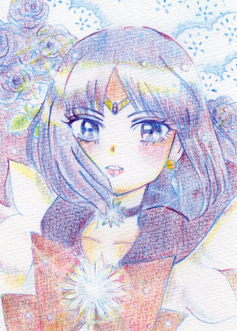 ほたるちゃんお誕生日おめでとう! 遅れた上に至らない点も多々あるのだけれども、お祝いできてとても嬉しいです 色がとにかく難しかった赤青黄の3色しばりの色鉛筆です #セラムンイラスト部